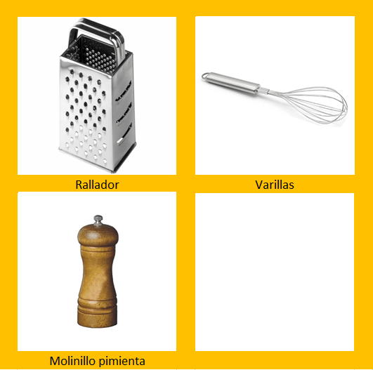 Existe una gran variedad de utensilios y herramientas para la elaboración de las ofertas culinarias. A continuación podemos ver los que se pueden considerar básicos en toda cocina.
