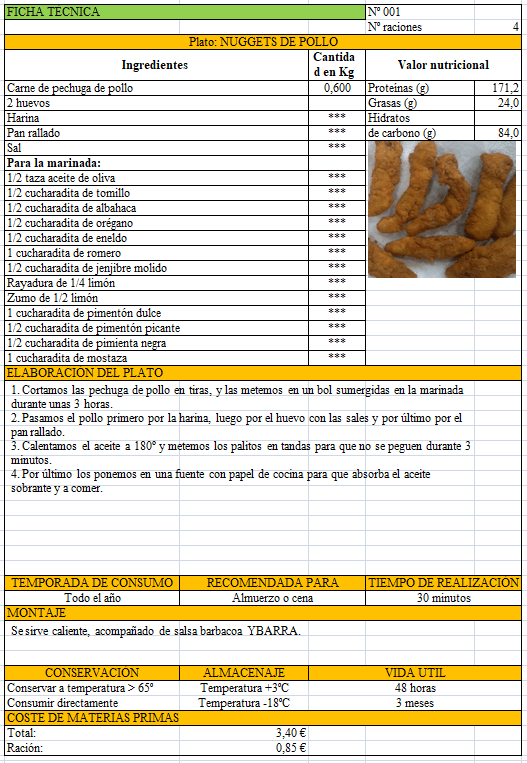 - Diseño de la oferta gastronómica: Nuggets de pollo.