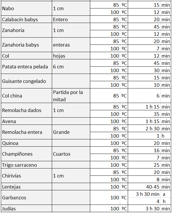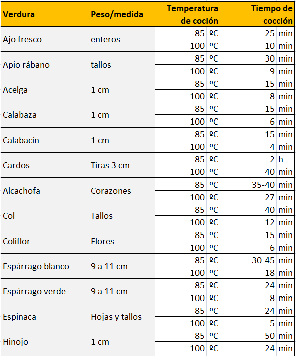 Además de las posibles técnicas que podamos utilizar para la preelaboración hay que conocer los tiempos de cocción de las verduras.